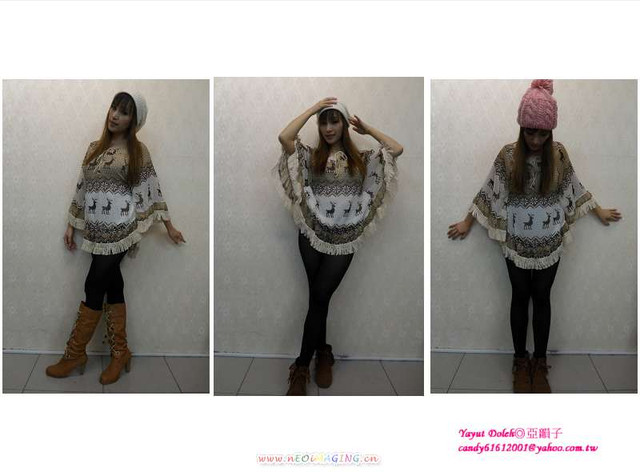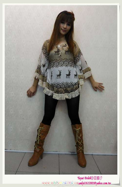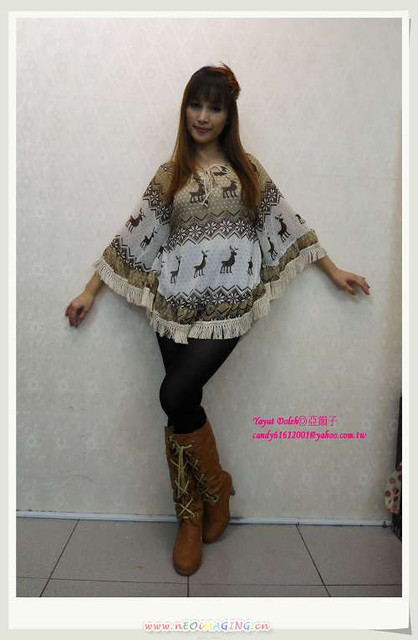 (一)英倫莊園 微光的幸福•圓領抽繩麋鹿印花雪紡下襬流蘇斗篷