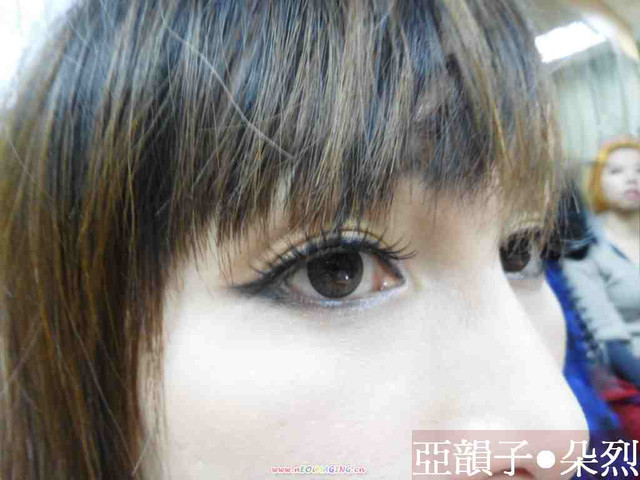 再畫上細細眼線,記得眼尾要句起來喔,才會有韓系FU