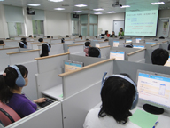 主要提供各項測驗、說明會及研討會等使用,可容納45人,主控台配備雙卡錄音機座、錄放影機、投影機、教材提示機等影音教學設備。學生座皆架設網路點,可依課程需求連結網路。
